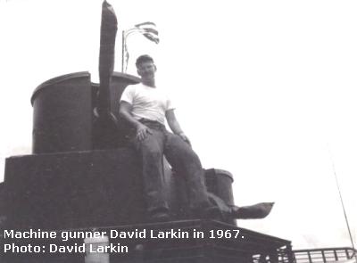duty and worked in the USS Okanogan's boiler room. "The worst job on the ship," said Larkin. "One of our chiefs came
