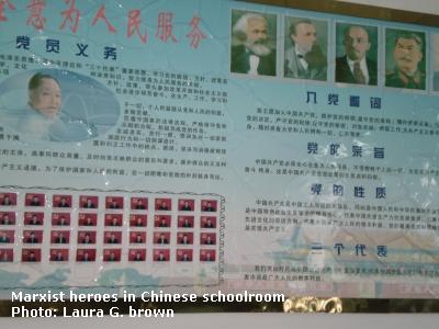 My first impression of the Xiaoshan Middle School campus was a shocker: In the teachers conference room, a huge poster bore photos of Karl Marx, Friedrich Engels, Lenin, Stalin, and Mao. I felt revulsion over this rogue's gallery of evildoers presented as heroes to Chinese schoolchildren. What other misinformation are they getting?