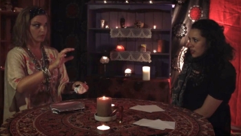 The psychic reading rooms are nicely lit, their set decor well-appointed with occult paraphernalia. Actually, Sue's and Zoe's reading rooms look identical. Sue notices this as she enters, but quickly ignores the strange coincidence. Sure, using the same room for both psychics made it easier on the film crew and the budget, but it also supports the humor. Monty Python often used the same sets for comedic effect, the characters pretending not to notice.