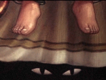 Za Edgara has no dialog, nothing to identify its protagonist other than the icons that have become associated with Poe -- ravens, a black cat, a swinging pendulum on a grandfather clock, and Poe's own darkly brooding features. The film is a gem of visual storytelling, its minimalist lines conveying atmosphere, character, and events, all darkly horrific.